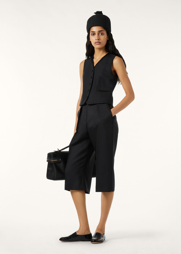 A timeless silhouette for refined layering, the Kilian vest is tailored with a classic V-neck and a subtly fitted waist. It is crafted from Barathea fabric, a woollen tailoring cloth infused with silk to balance structure, sheen, and sophistication. Satin borders trace the neckline and pocket welts with considered polish.